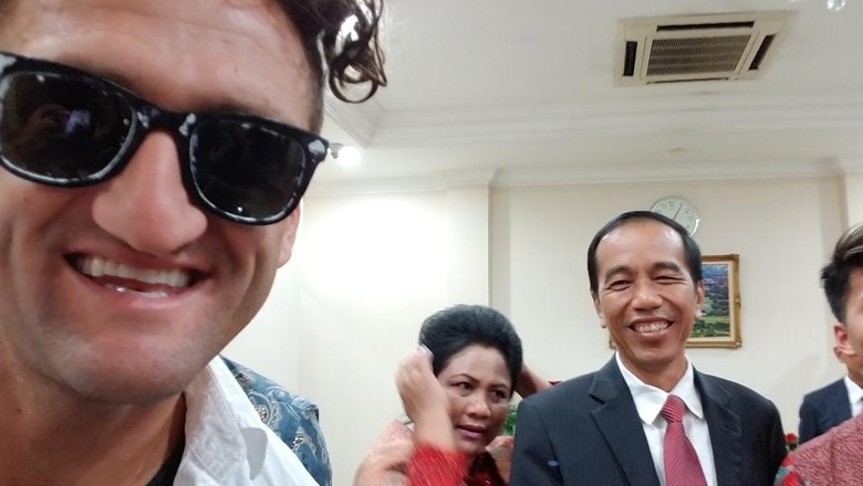 Foto: dok. Twitter @CaseyNeistatJakarta - Youtuber terkenal asal Amerika Serikat, Casey Neistat mendapat pengalaman langka di kunjungan singkatnya ke Indonesia. Dia sempat selfie bareng Presiden Joko Widodo!